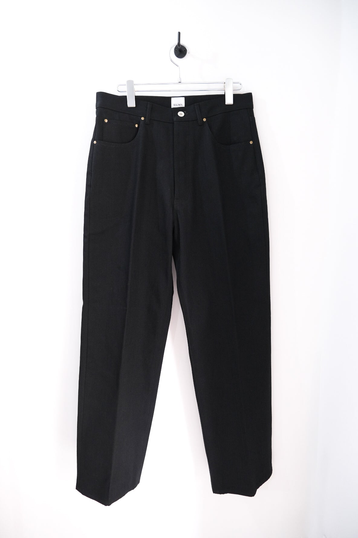 新色のブラックは経緯ともに先染めで黒に染めた濃黒を使用。センタープレスを入れ、よりスラックスライクに着用できる。