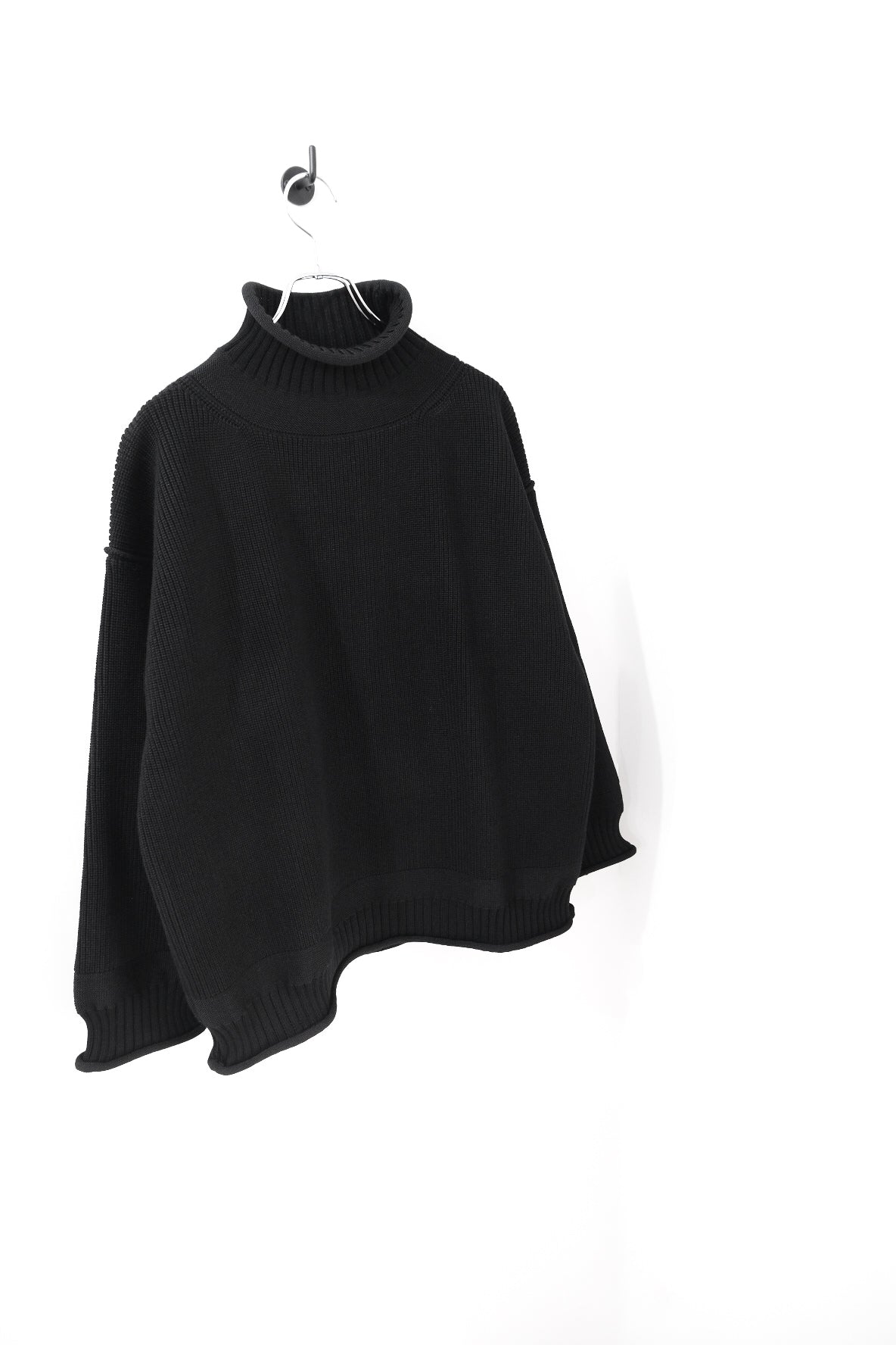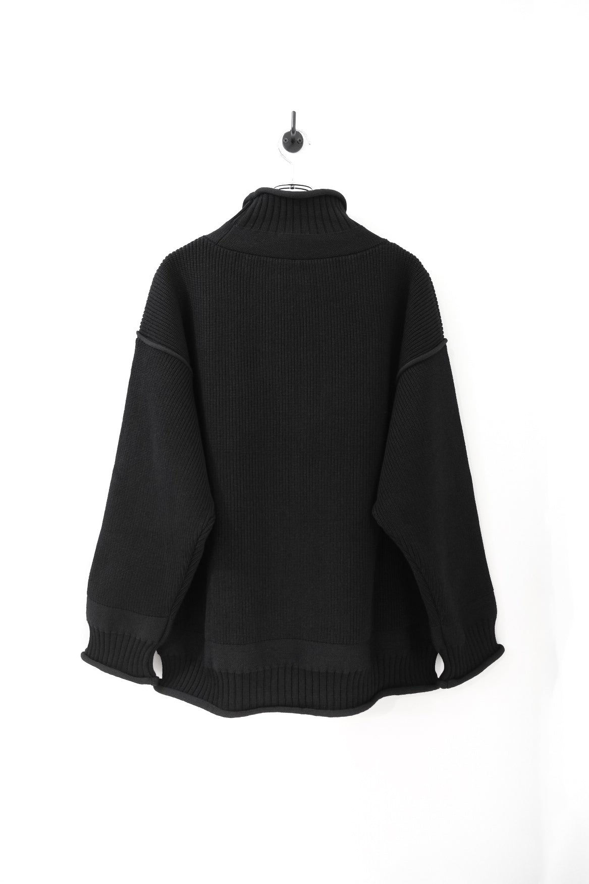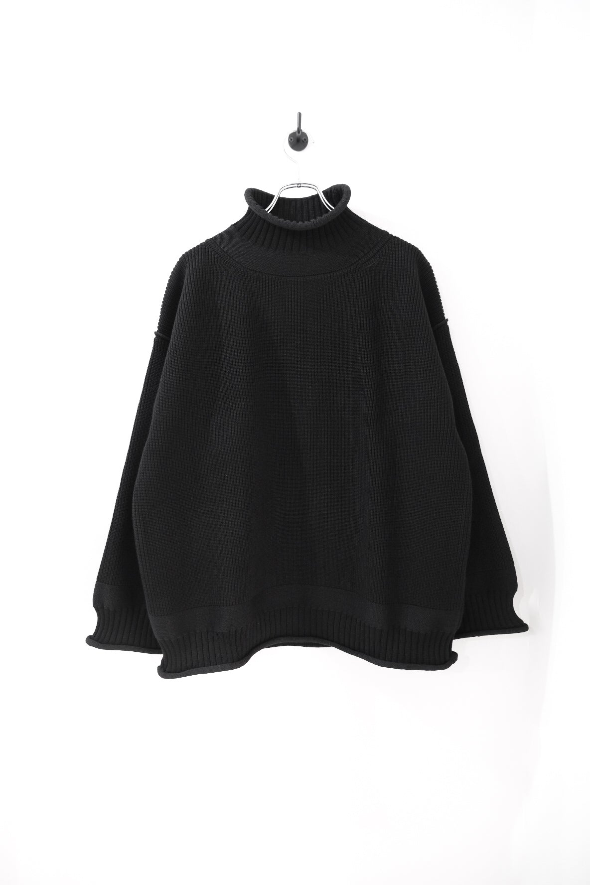 しっかりとした肉感の7G畦編みで編み上げたこのニットは、ゆったりとしたシルエットが特徴的で存在感がある。