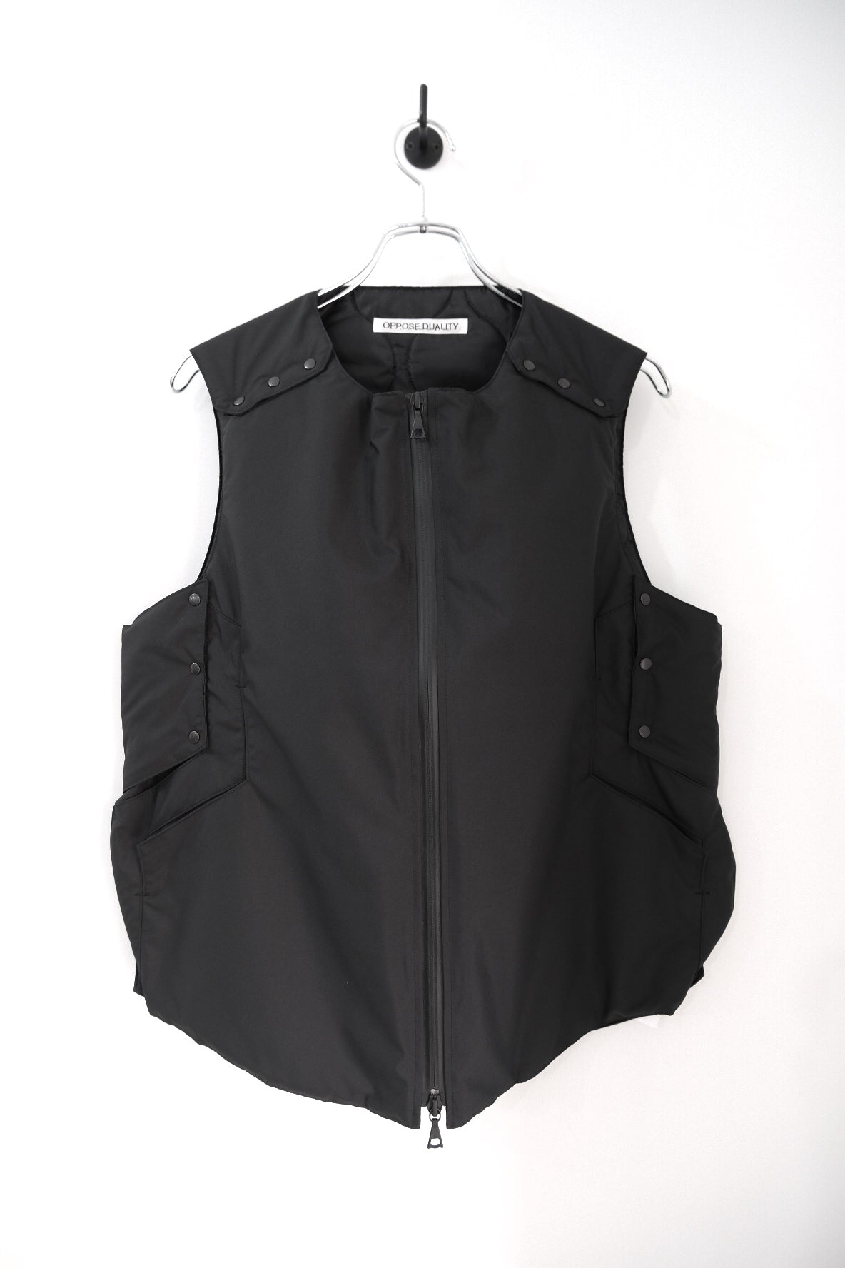フロントは止水ファスナー、脇と肩はスナップで開閉可能。