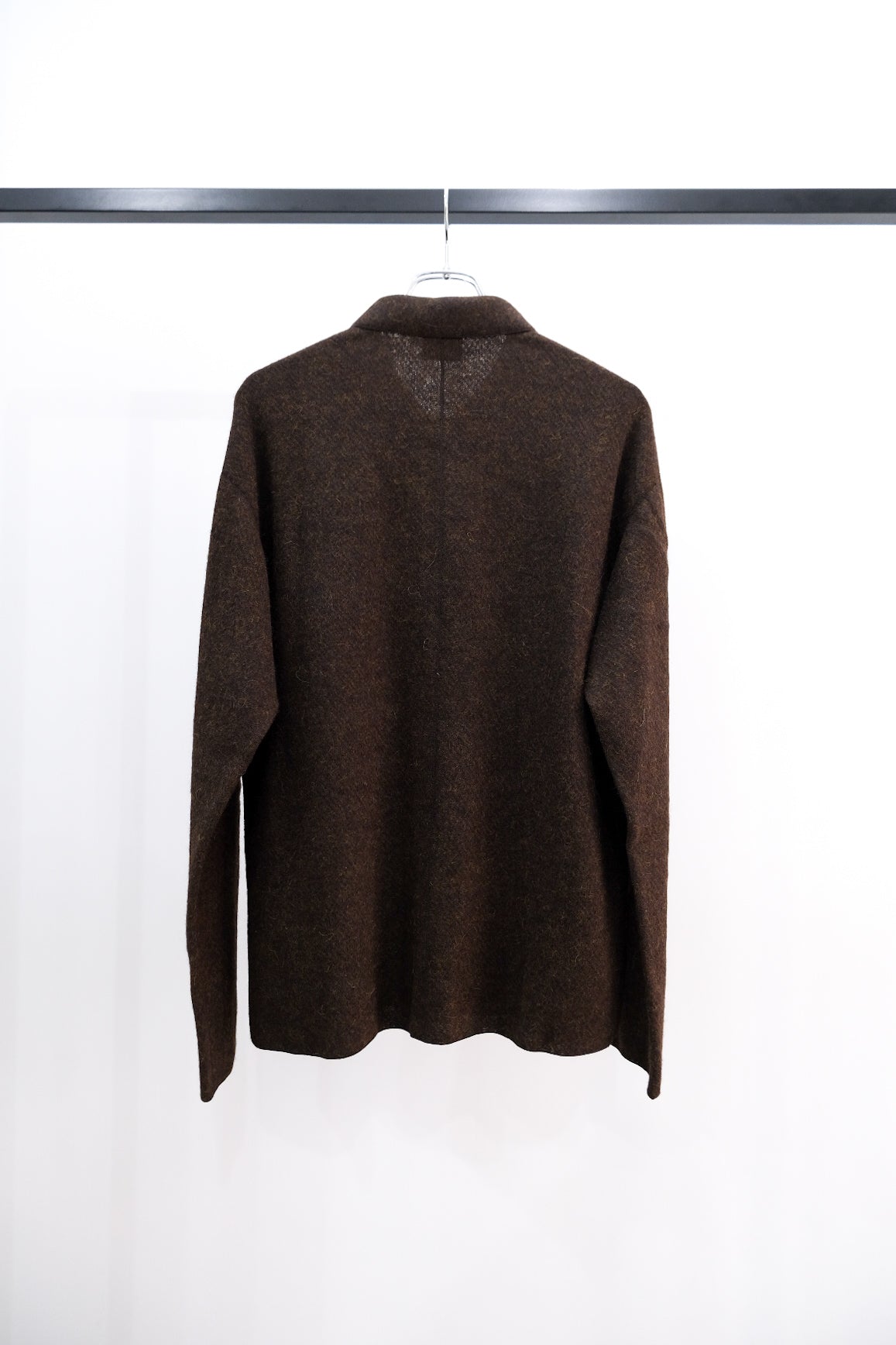 1887年創業深喜⽑織さんの厳選されたベビーアルパカの⽷を使⽤し、カシミヤニットと同じくアルパカの縮絨ニットを製作した。