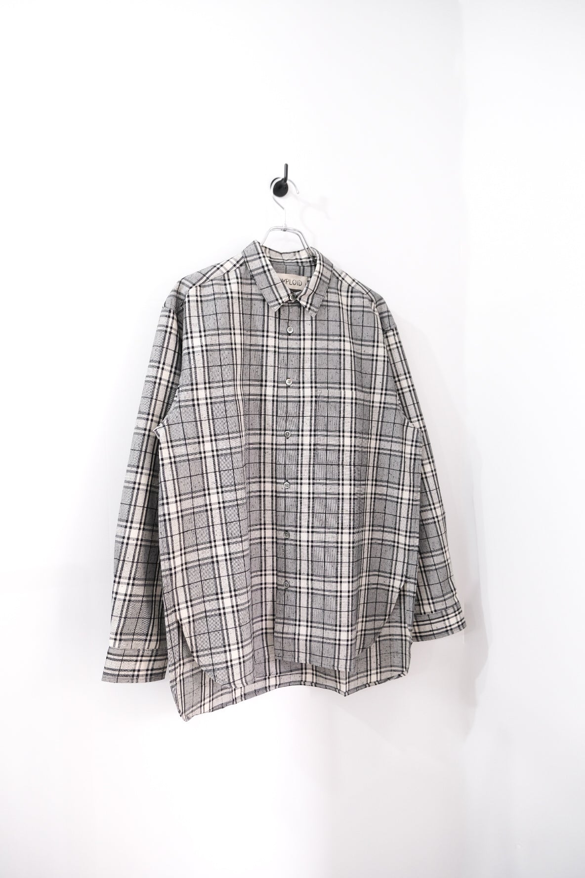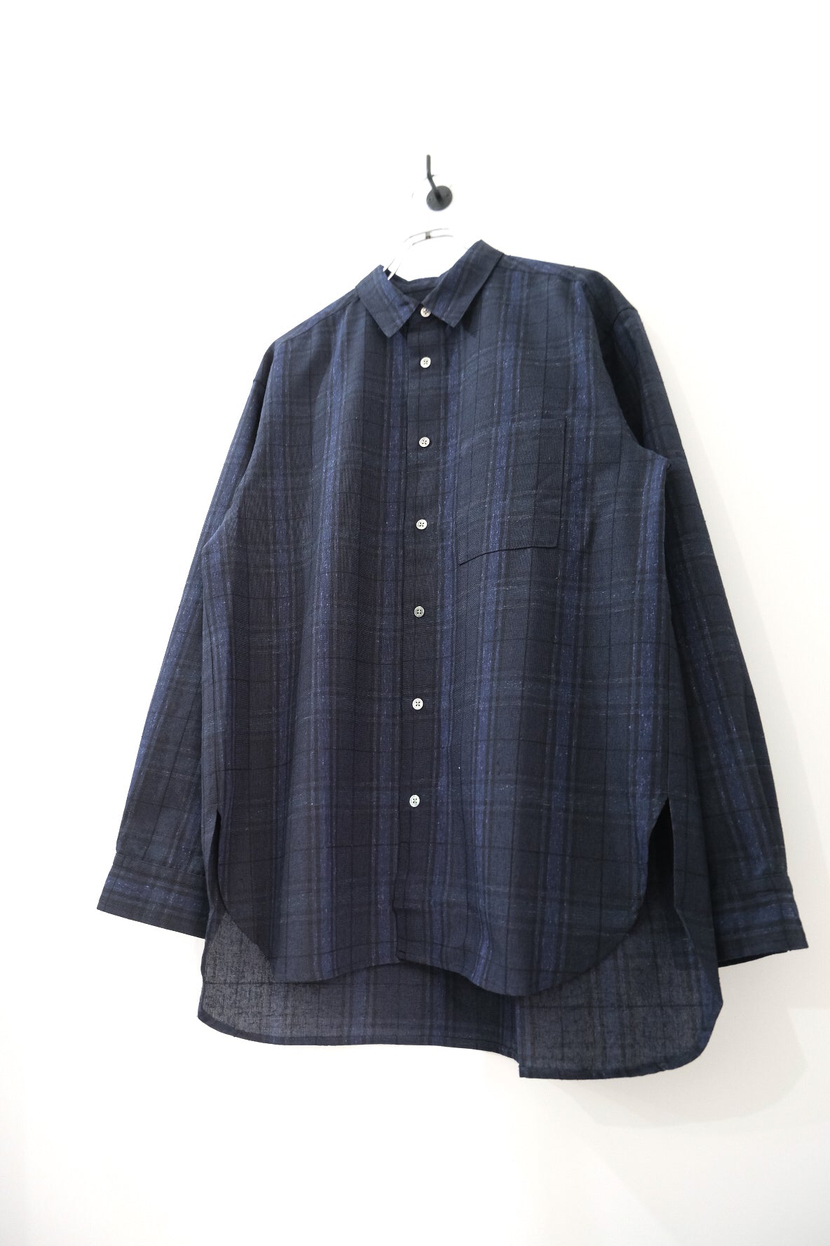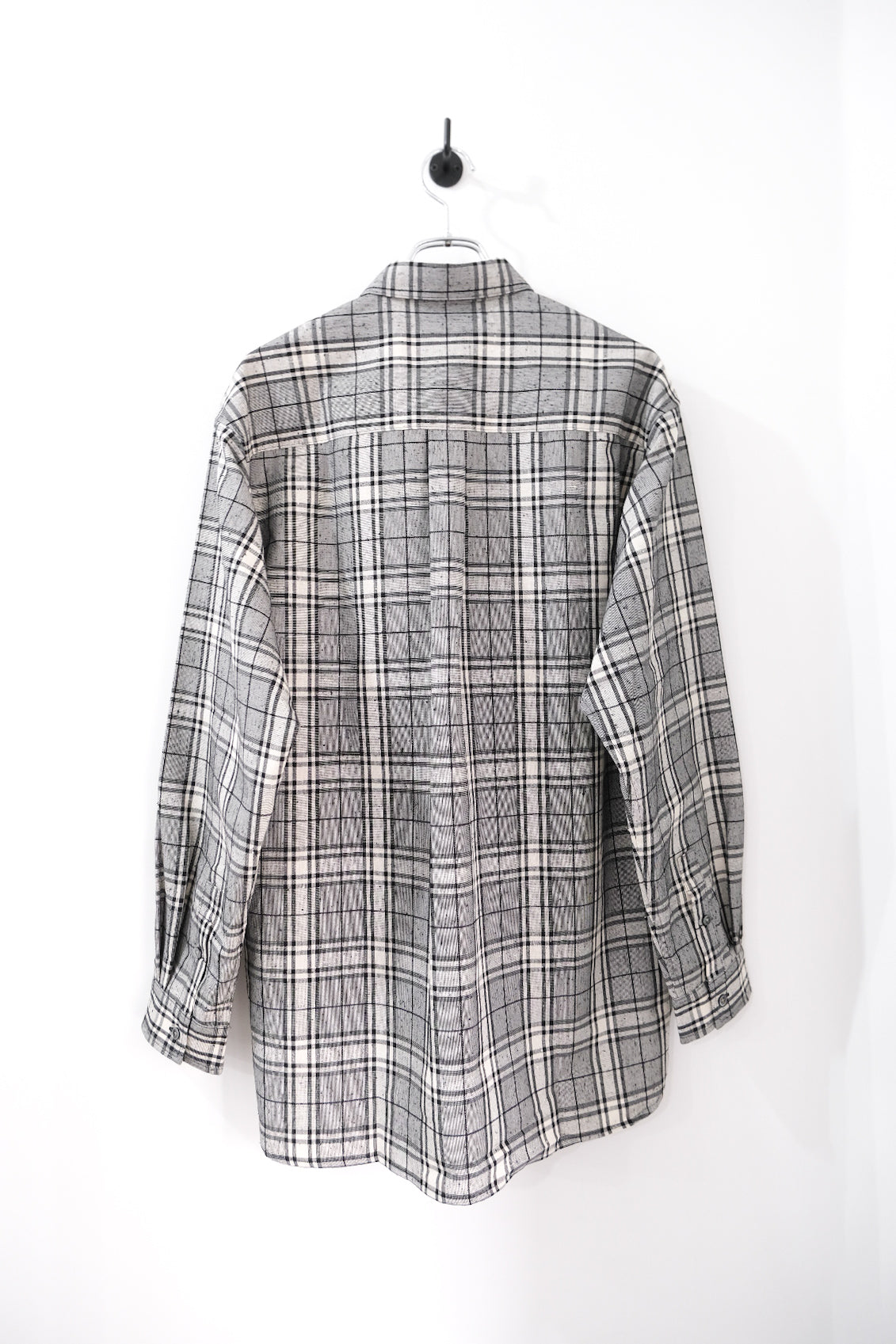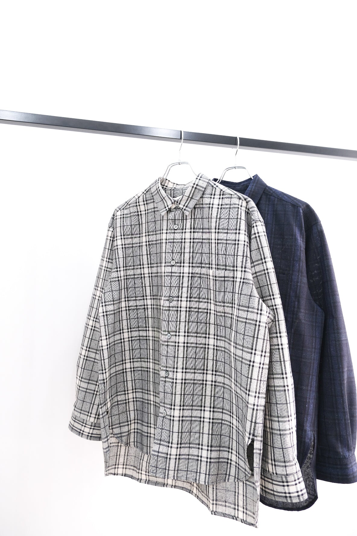 強撚のレーヨンポリエステルにシルクのネップが入った特徴のある糸使いのチェック柄ドビー織りの生地を使用している。
