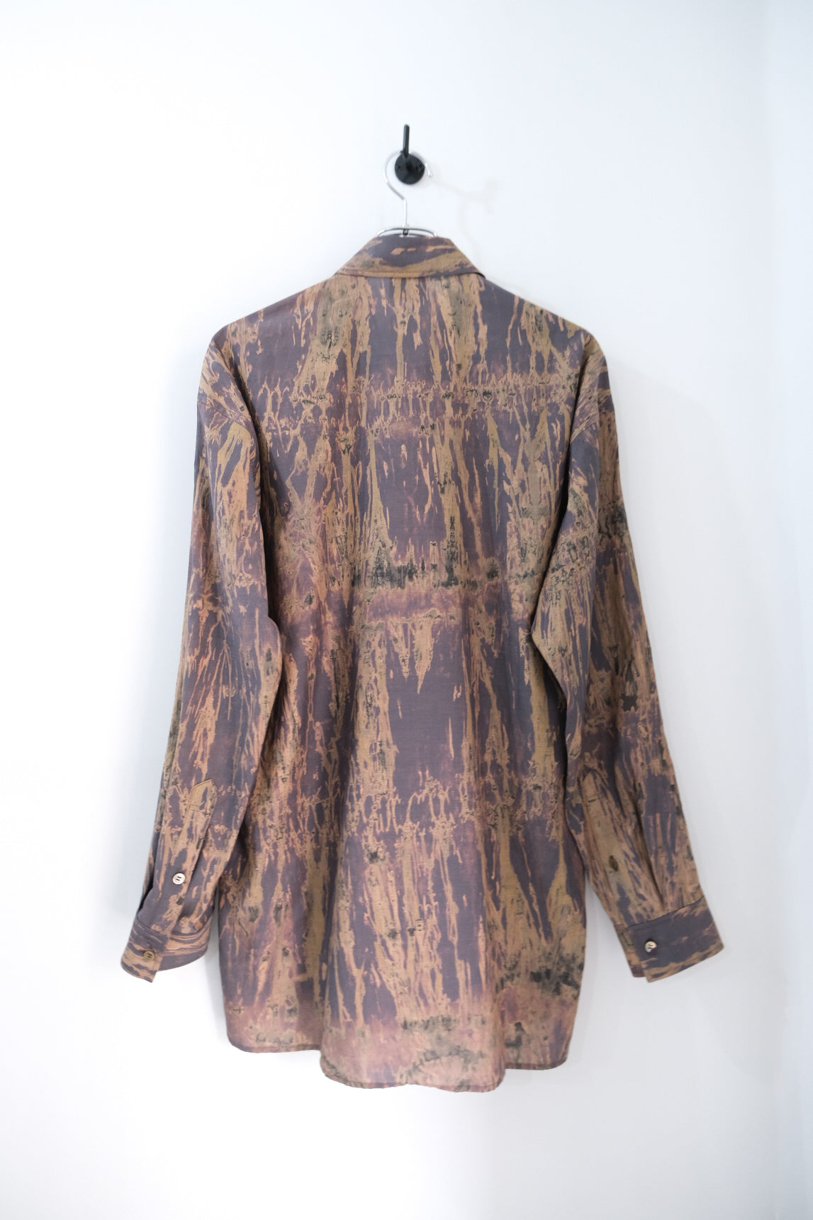 肌あたりの良い薄手のコットンキュプラ素材に、近年気に入って使用している流し染め格子絞りを施したテキスタイル。