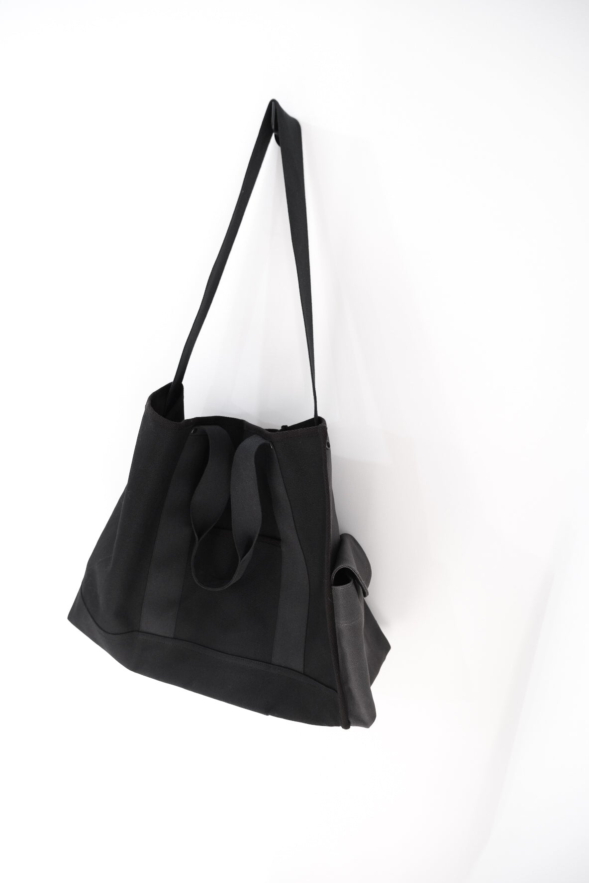 片側にマチを作っているが、内側に折り畳む仕様にしているため、肩からかけても後を気にせず使用出来る。