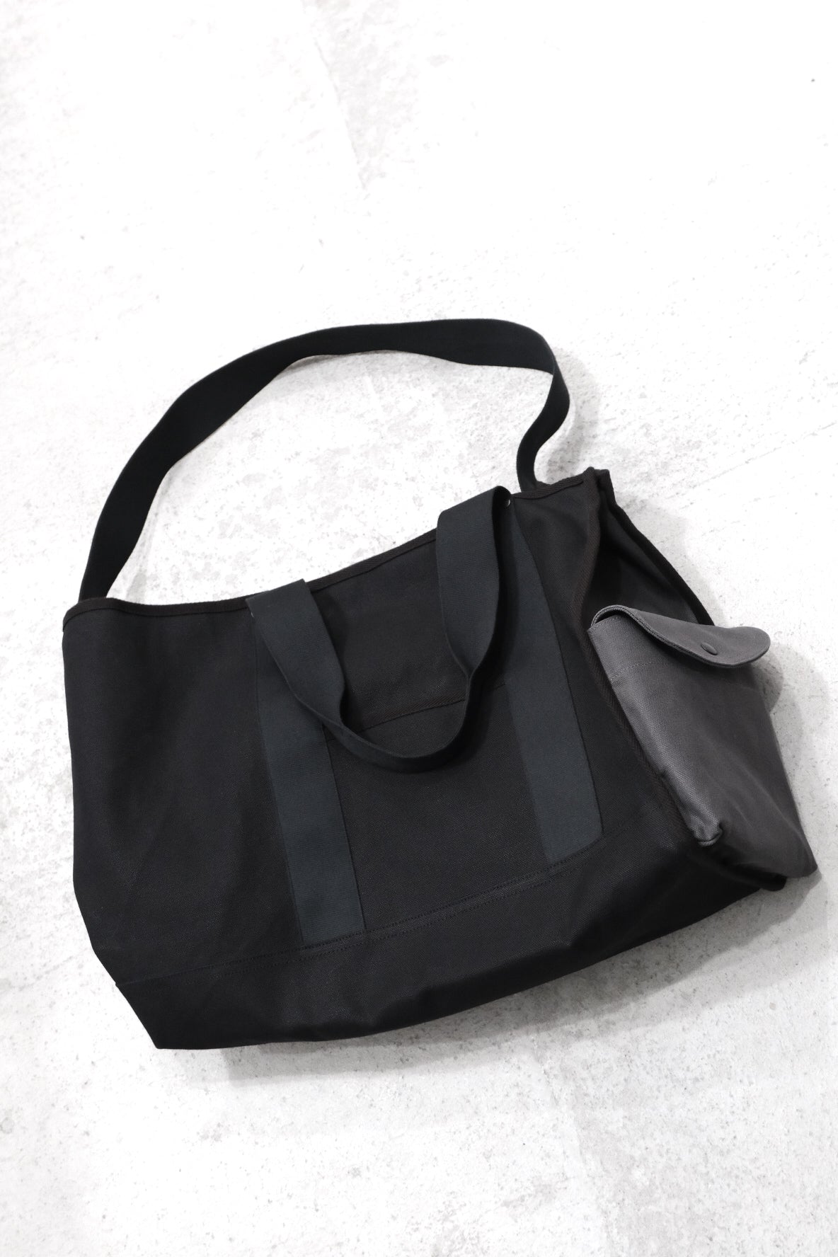 インラインではマチ部分にラバーの様なタッチの「ターポリン」という素材を使用していたが、別注として全て帆布にて製作。