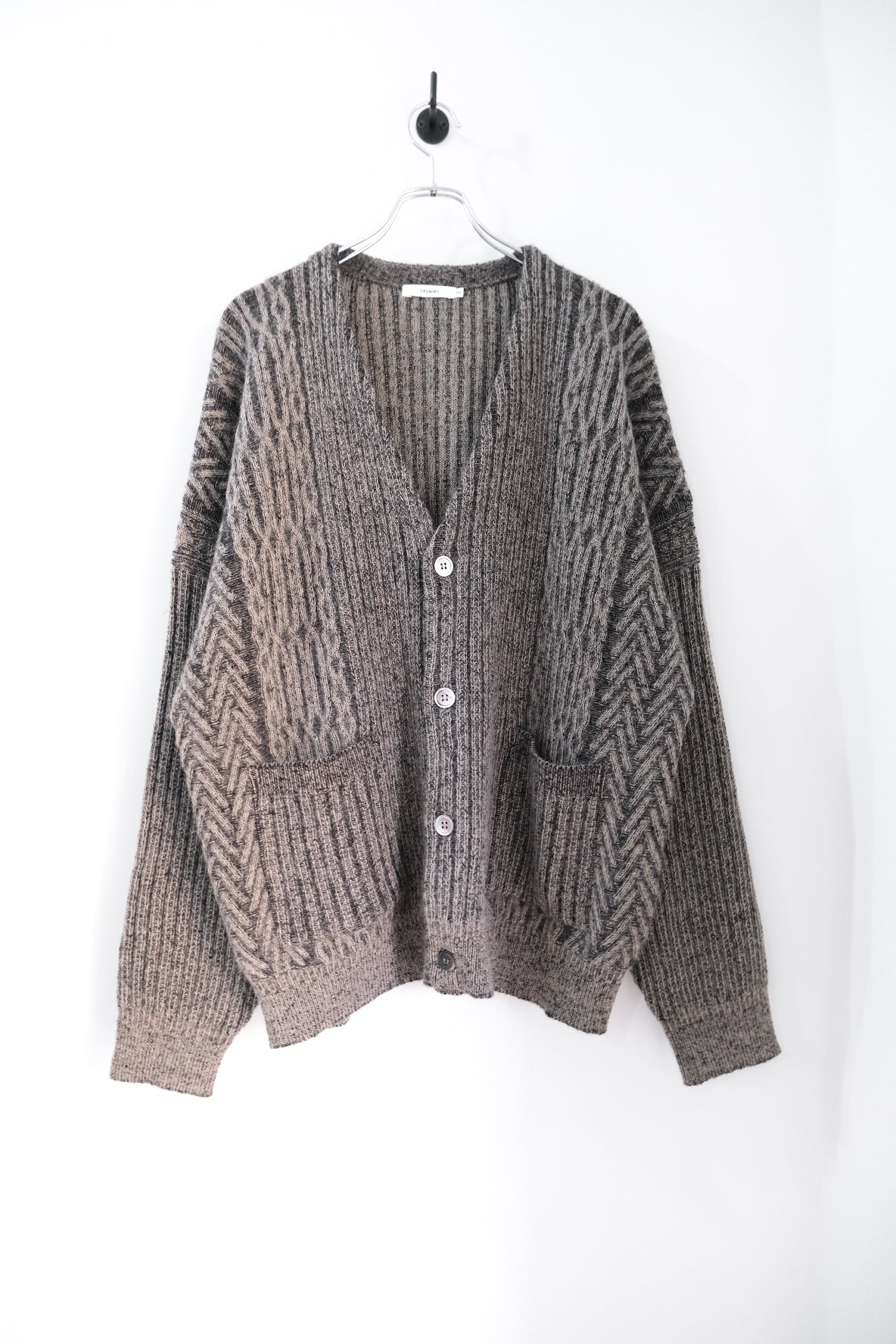 プレーティング編みと言われる表目側と裏目側で異なる糸を編む技法を使用し、表と裏で糸の色を変えて、2色で編むことで奥行きのある表情に仕上げた。