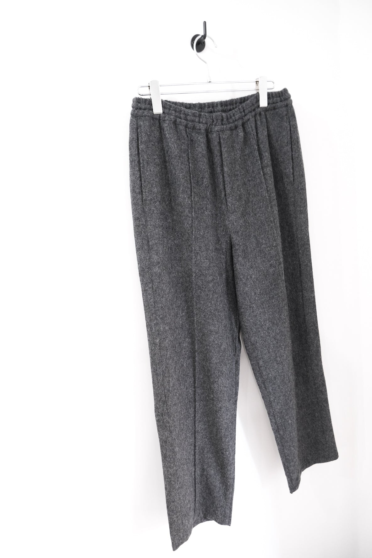 リサイクルウールによる軽さとメランジカラーが特徴の起毛平織り生地を使用している。