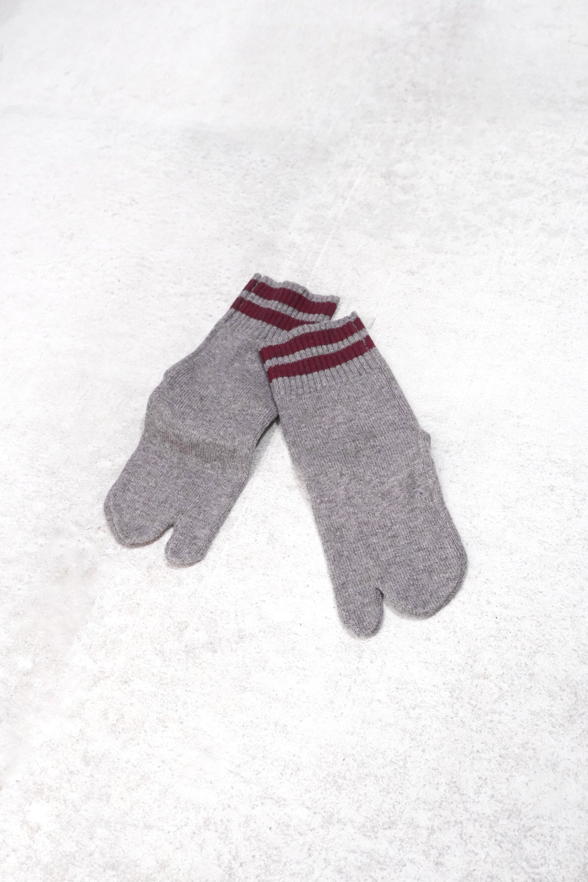 カシミヤ混の糸を使用した足袋型ルームソックス。