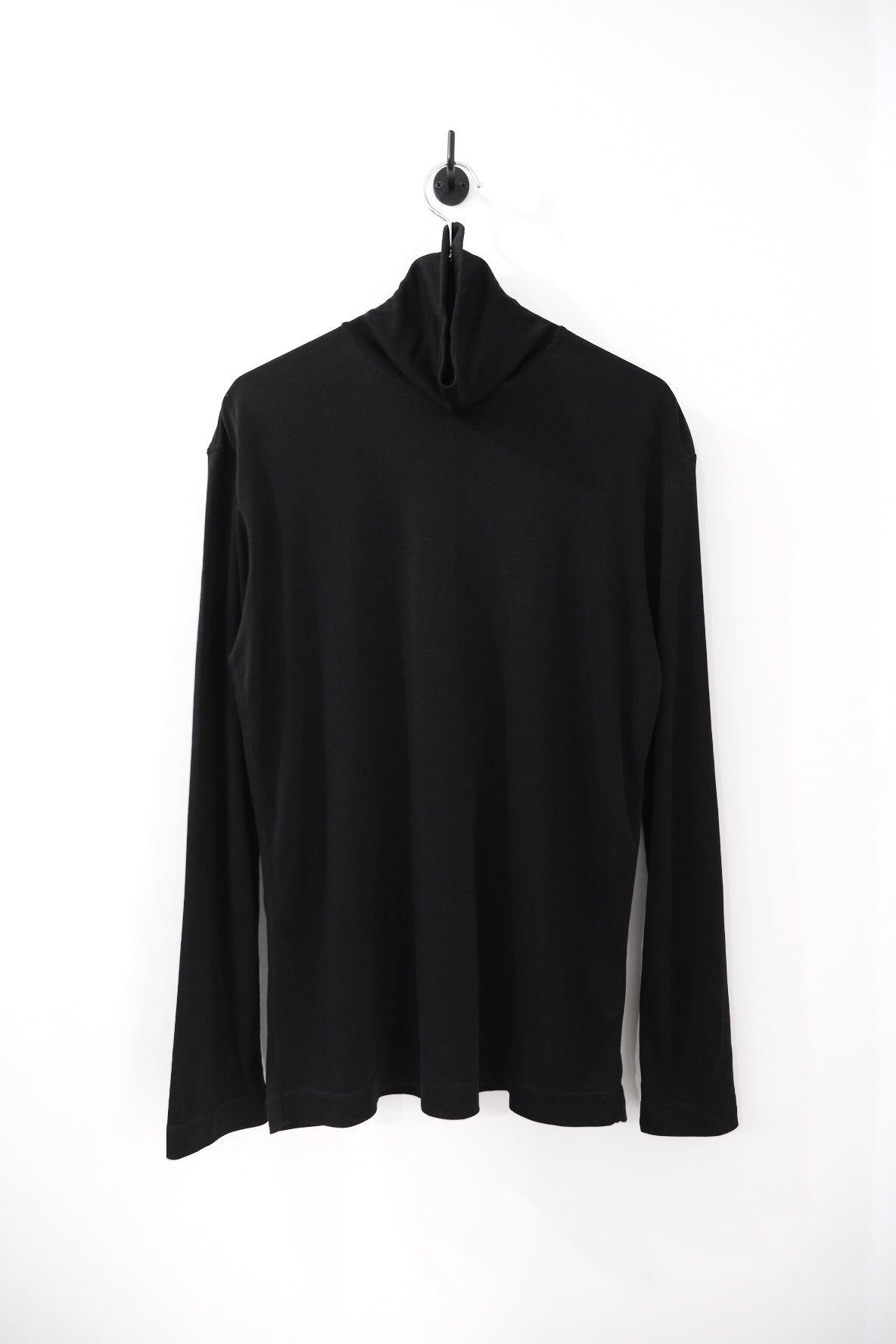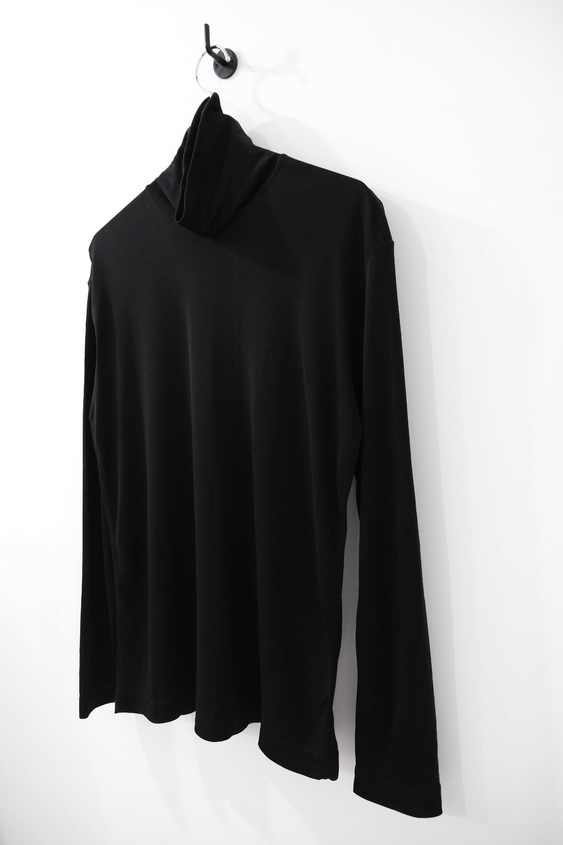 インナーに着用することをイメージしたサイズスペックで仕立てたタートルネックTシャツ。