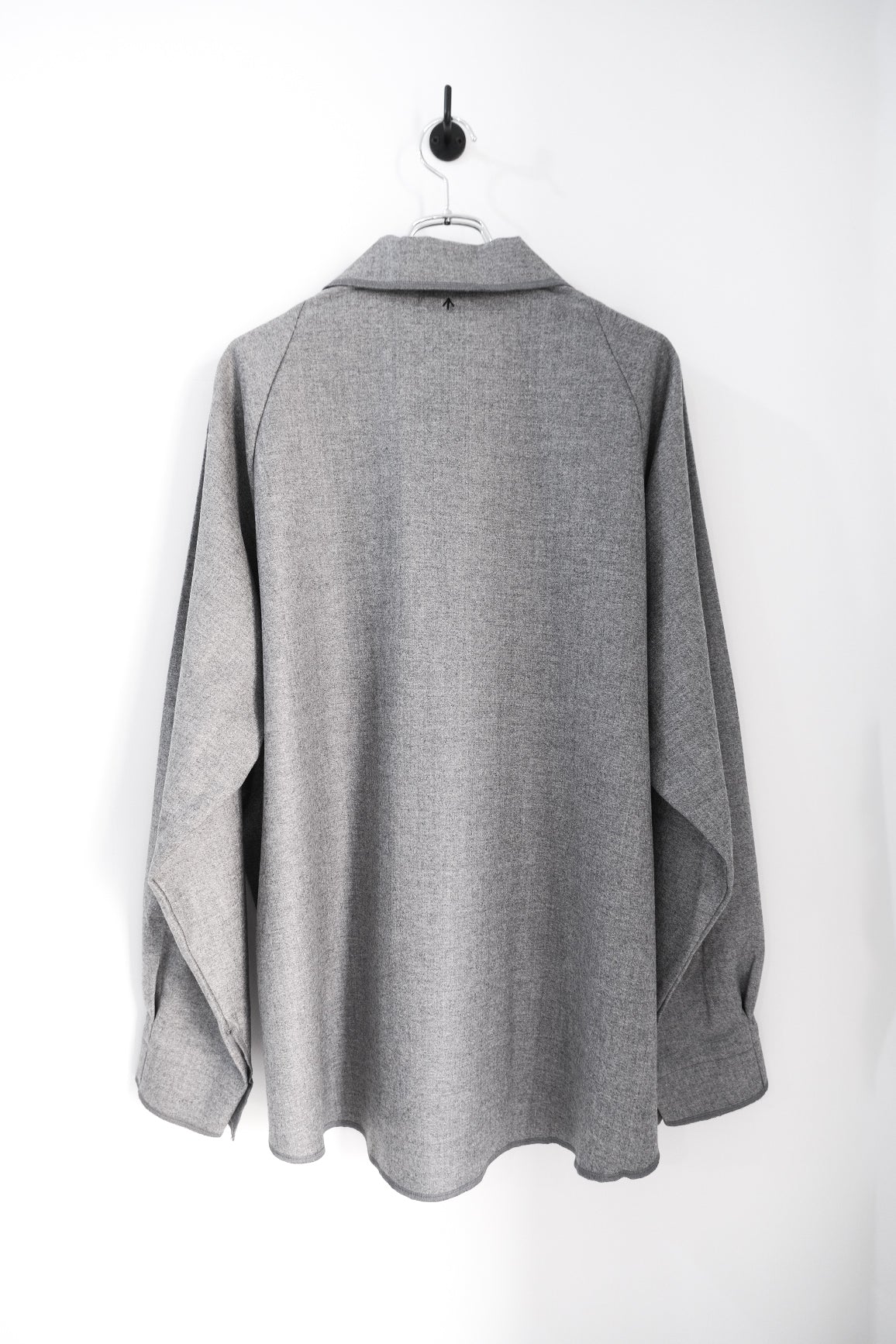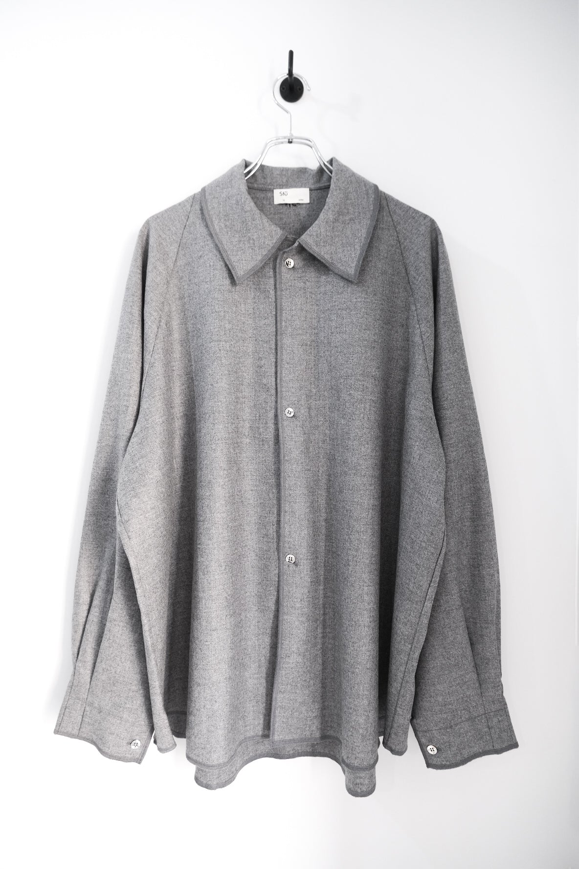 前端仕様とし、裾と袖口はロックミシンのステッチ始末としている。